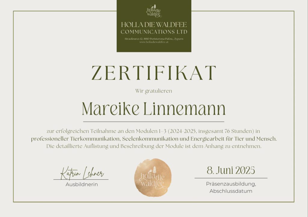Ich bin Mareike – feinfühlige Begleiterin für Menschen & Tiere. Ich arbeite mit Wahrnehmung statt Bewertung und öffne Räume für Klarheit, Verbindung und innere Heimkehr.